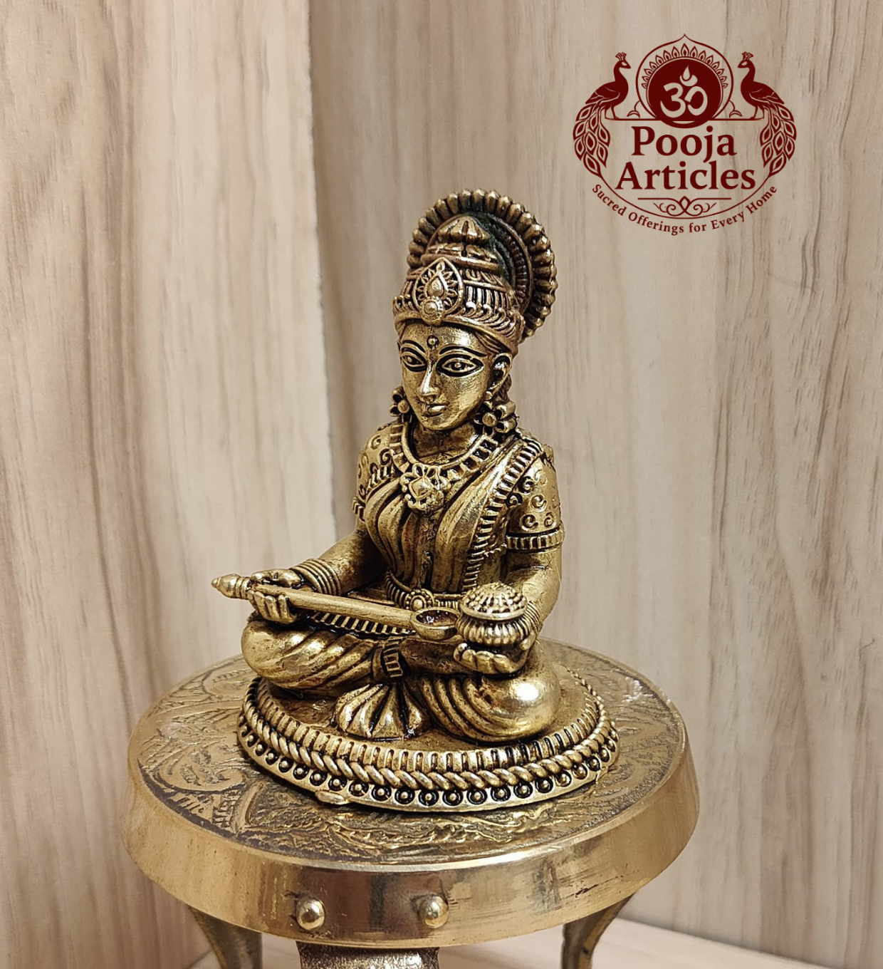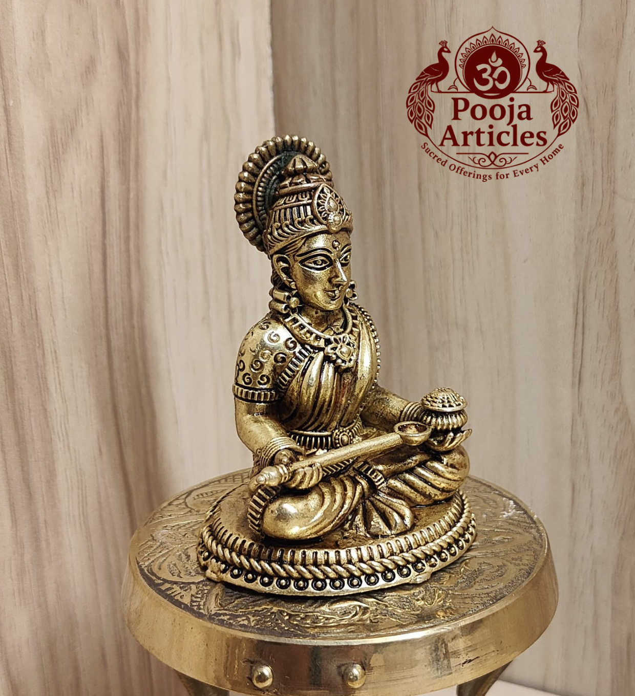 Available at poojaarticles.com, this Brass Annapoorani Idol brings blessings of prosperity, food abundance, family well-being, and spiritual protection.