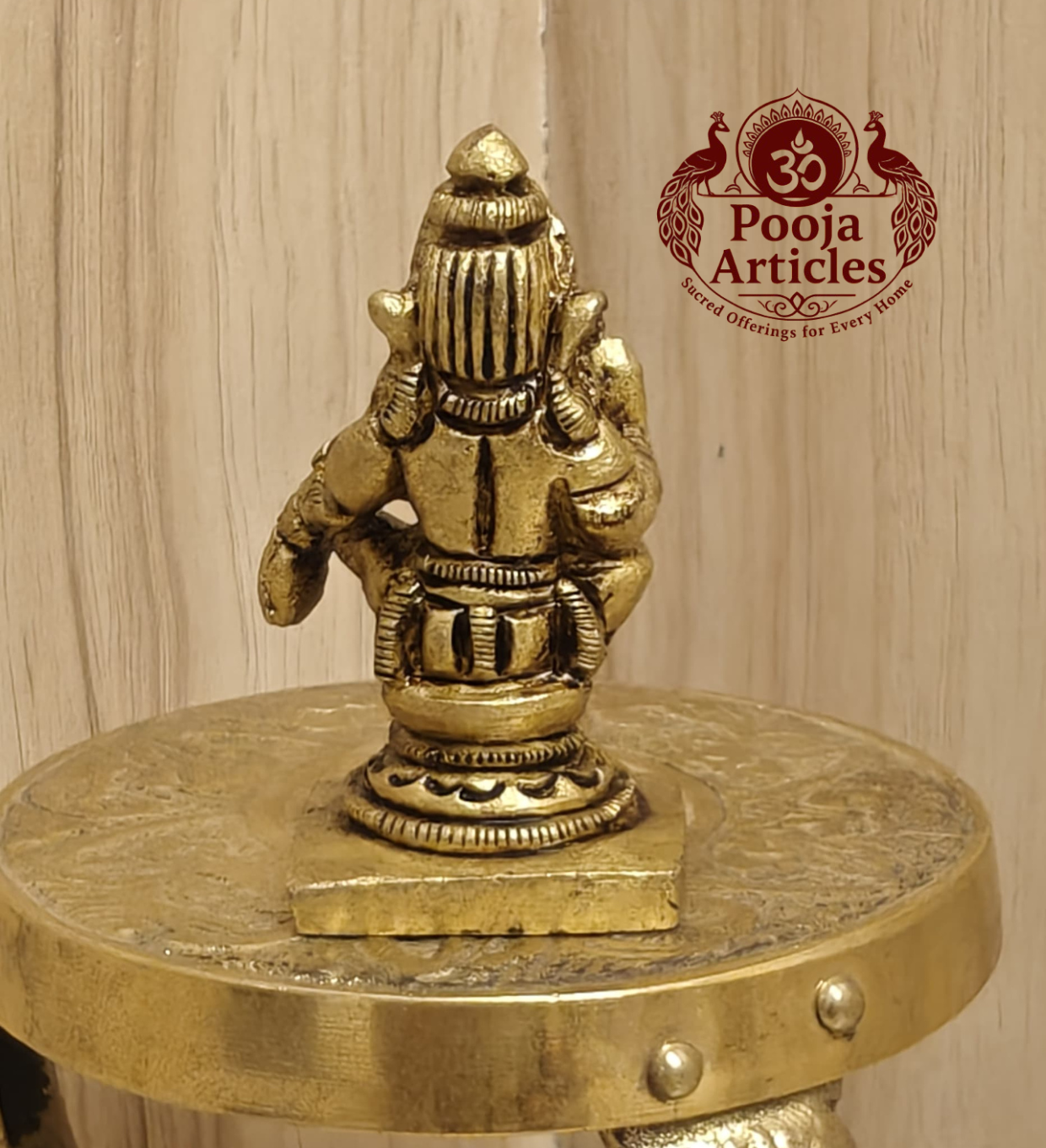 Discover the exquisite Brass Ayyappa Swami Statue (100 g, 2″ height, 1″ length, 1″ breadth) at PoojaArticles.com—perfect for home puja, office altars, gifting or temple décor. Bring divine blessings and serene devotion to your space.