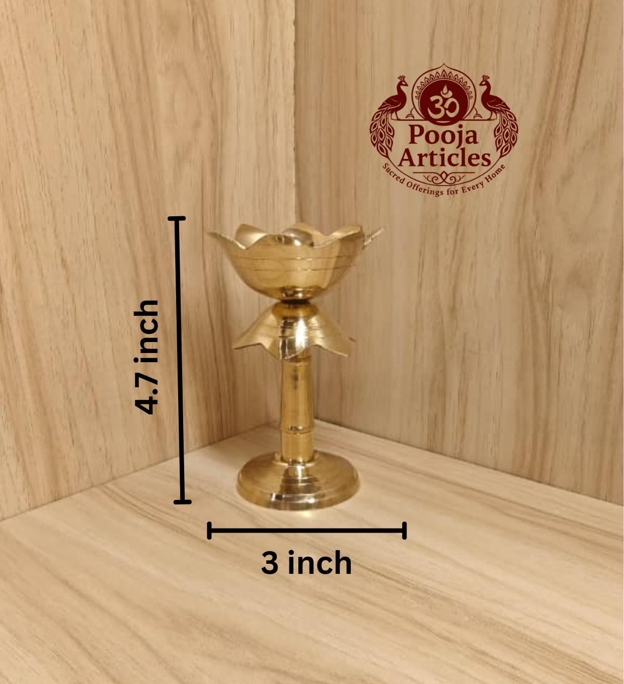 Buy Brass Diya Stand Lotus 150g, 4.7″ – Illuminate Traditional Oil Lamp For Lighting & Puja Use