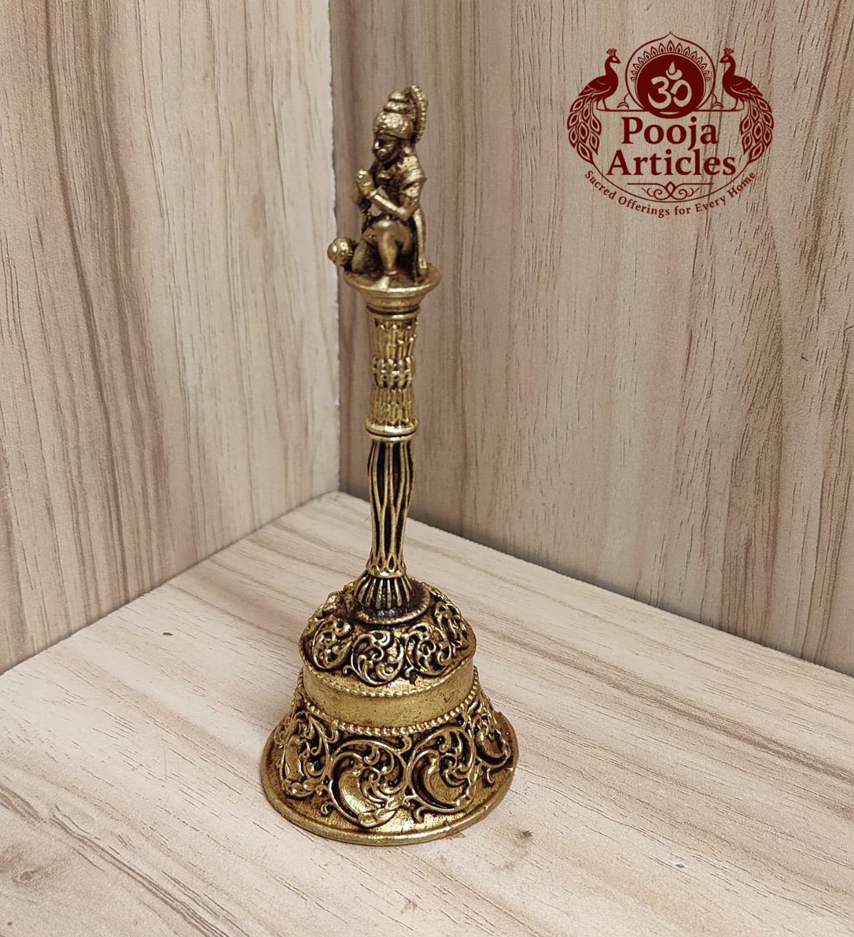 Buy Premium Brass Hanuman Bell (75 grams, 4.4 inch height) for home temple and pooja. Pure brass Hanuman bell brings protection, positive energy, and divine blessings.