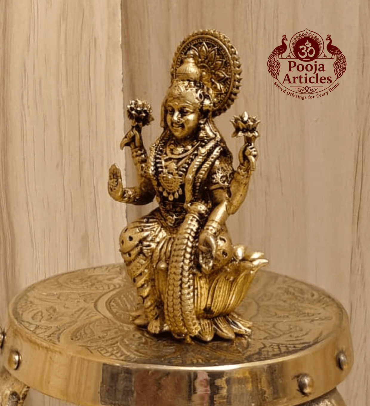The Premium Brass Lord Lakshmi Devi Statue offered by poojaarticles.com undergoes quality checks to ensure material purity, finish consistency, and spiritual authenticity.