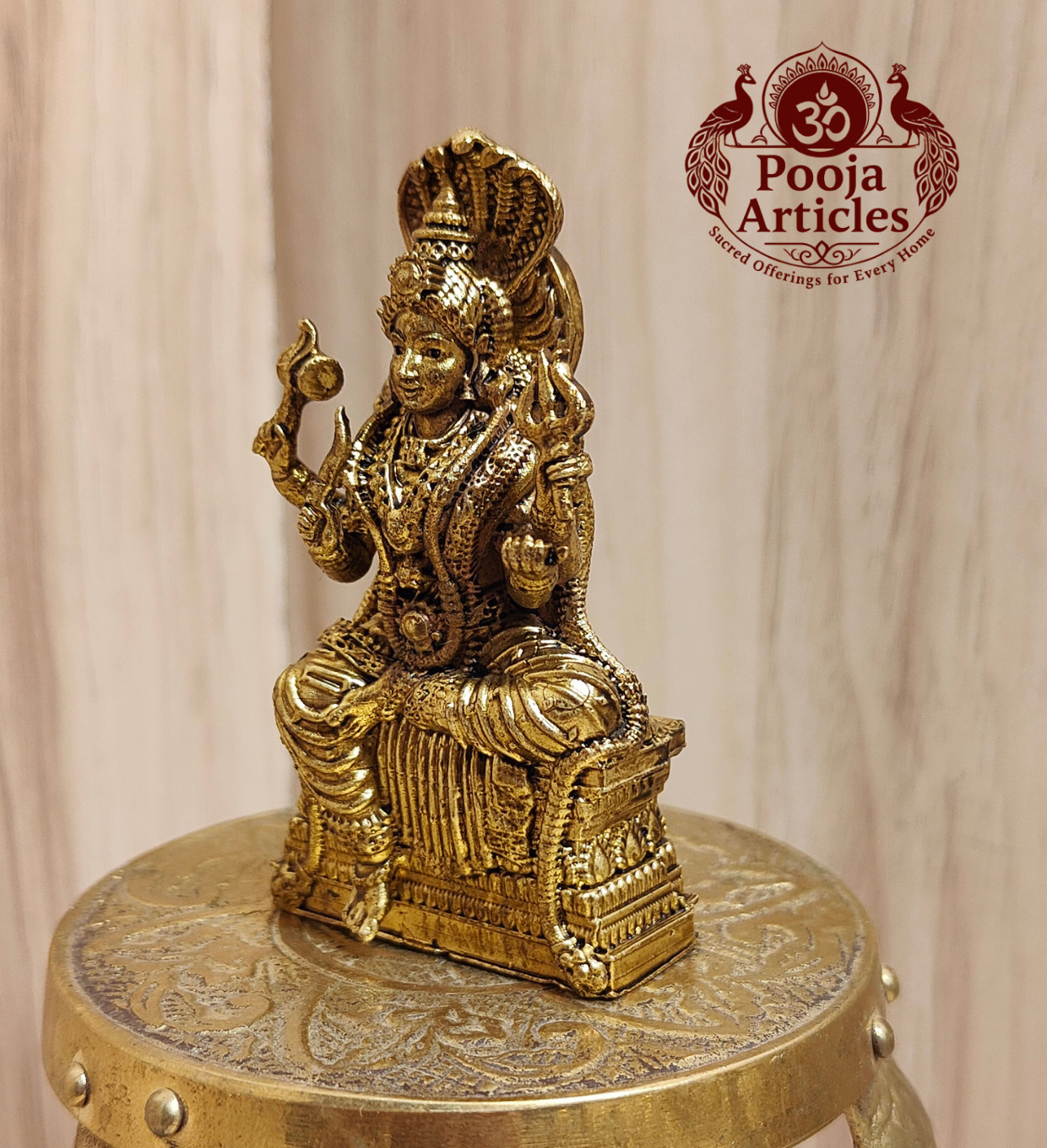 Buy premium Brass Mariamman Statue (110g, 3 inch) for home pooja, vastu protection, and divine blessings. Authentic handcrafted Goddess Mariamman idol online at poojaarticles.com.