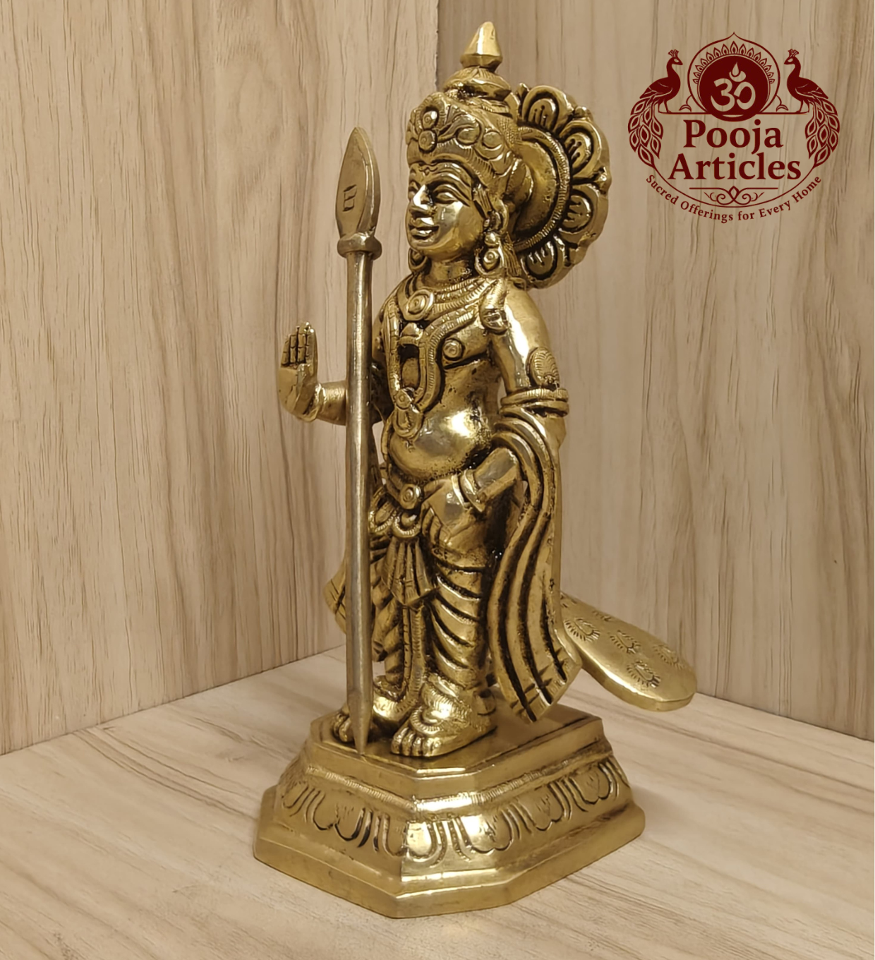Buy Brass Murugan Silai for Puja Room Online – 7.4″ handcrafted statue for pooja & decor. Embrace divine energy with this exquisite bronze Murugan idol. Shop now at poojaarticles.com.