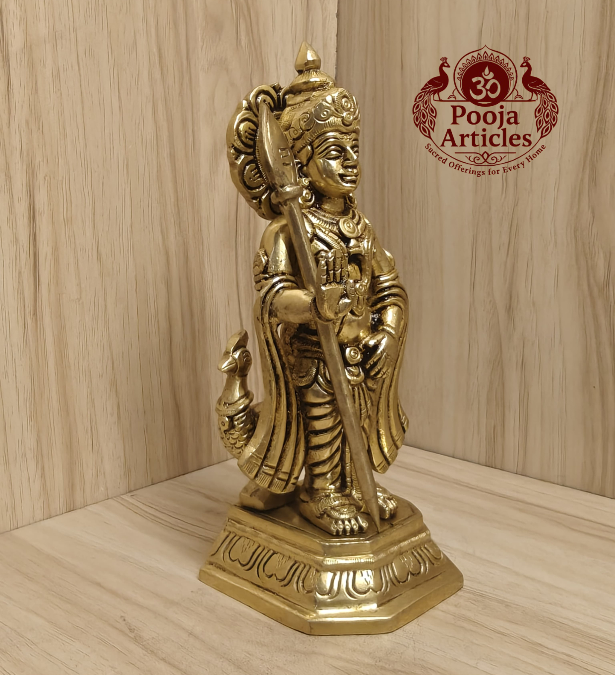 Buy Brass Peacock Murugan Statue Online – 1.200g, 7″ Handcrafted Lord Murugan Idol for Pooja and Home Decor
