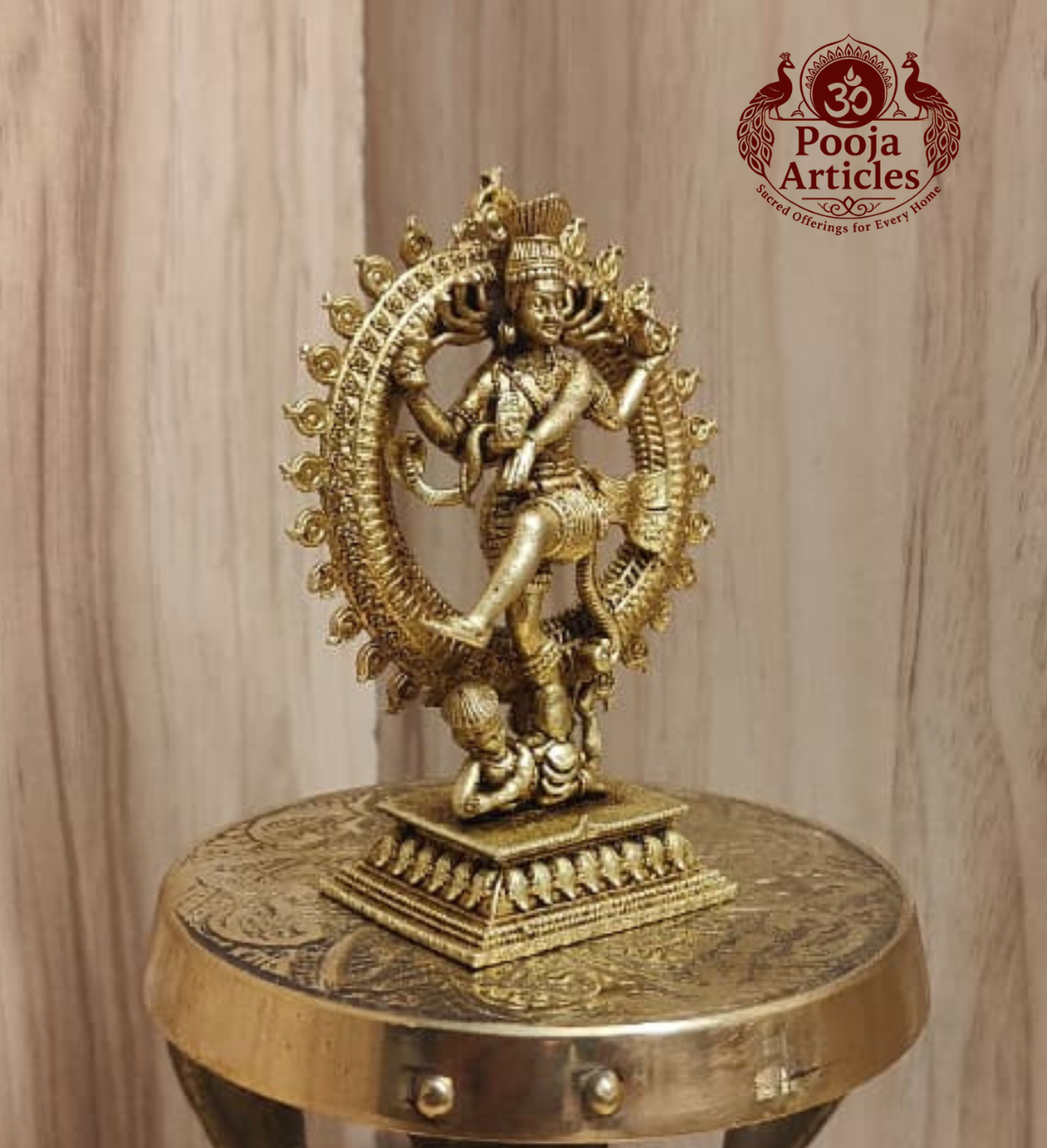 Premium Brass Nataraja Statue 70g, 2.9″– Small Brass Nataraja Idol for Home Pooja, Spiritual Decor and Divine Blessings. Buy now at poojaarticles.com.