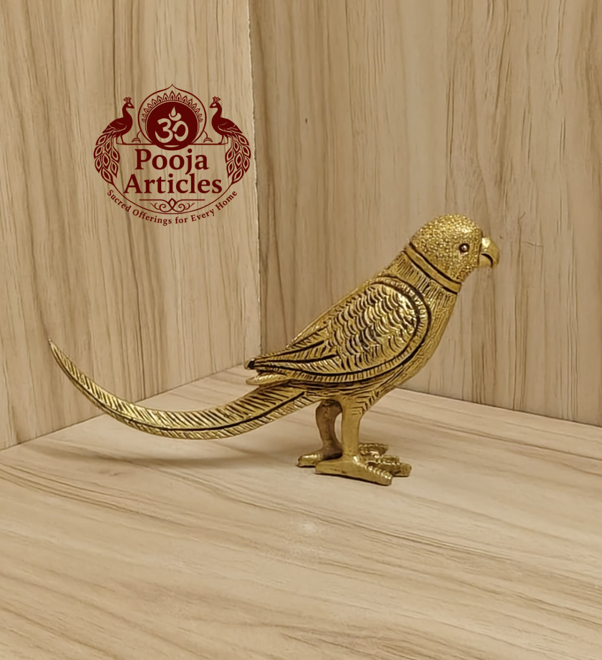 Bring divine beauty and spiritual harmony to your space with the Brass Parrot Showpiece. Weighing 300 grams and standing 3 inches tall, this handcrafted brass bird statue is perfect for home decor, puja altars, and gifting. Shop authentic Brass Parrot Showpiece at poojaarticles.com for elegance and positive energy.