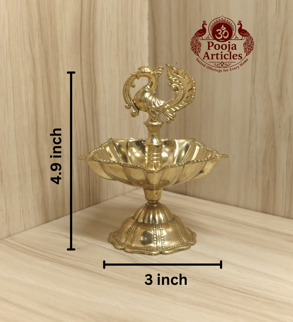 Bring divine brilliance and auspicious blessings to your home with the Brass Peacock Diya, a 130-gram handcrafted oil lamp standing 4.9 inches tall. Symbolizing prosperity, wisdom, and spiritual beauty, this diya is perfect for pooja, gifting, decor, and festival rituals. Discover authentic Brass Peacock Diyas at poojaarticles.com for spiritual elegance.