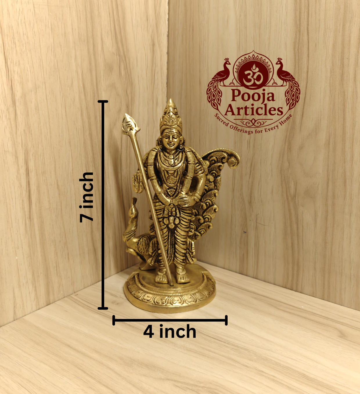 Invite wisdom, victory, and protection with the Brass Lord Murugan Peacock Idol, a 370g, 4.5-inch handcrafted icon of spiritual strength and clarity. Designed for home altars, puja shelves, and auspicious gifting, this exquisite brass Murugan radiates courage and blessings. Shop authentic Lord Murugan Peacock Idol at poojaarticles.com for divine energy and prosperity.