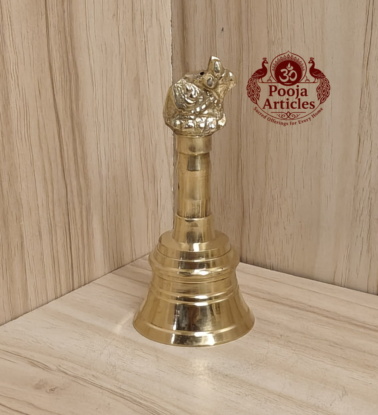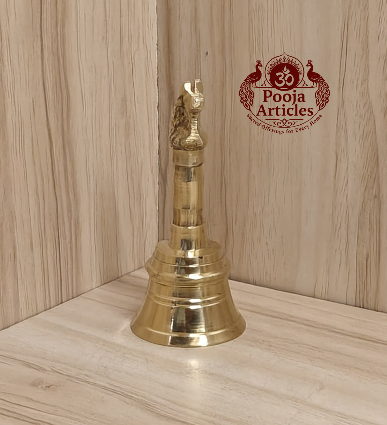 In Hindu rituals, the ringing of a pooja bell symbolizes the invocation of deities and the awakening of spiritual energies. The Brass Pooja Bell: