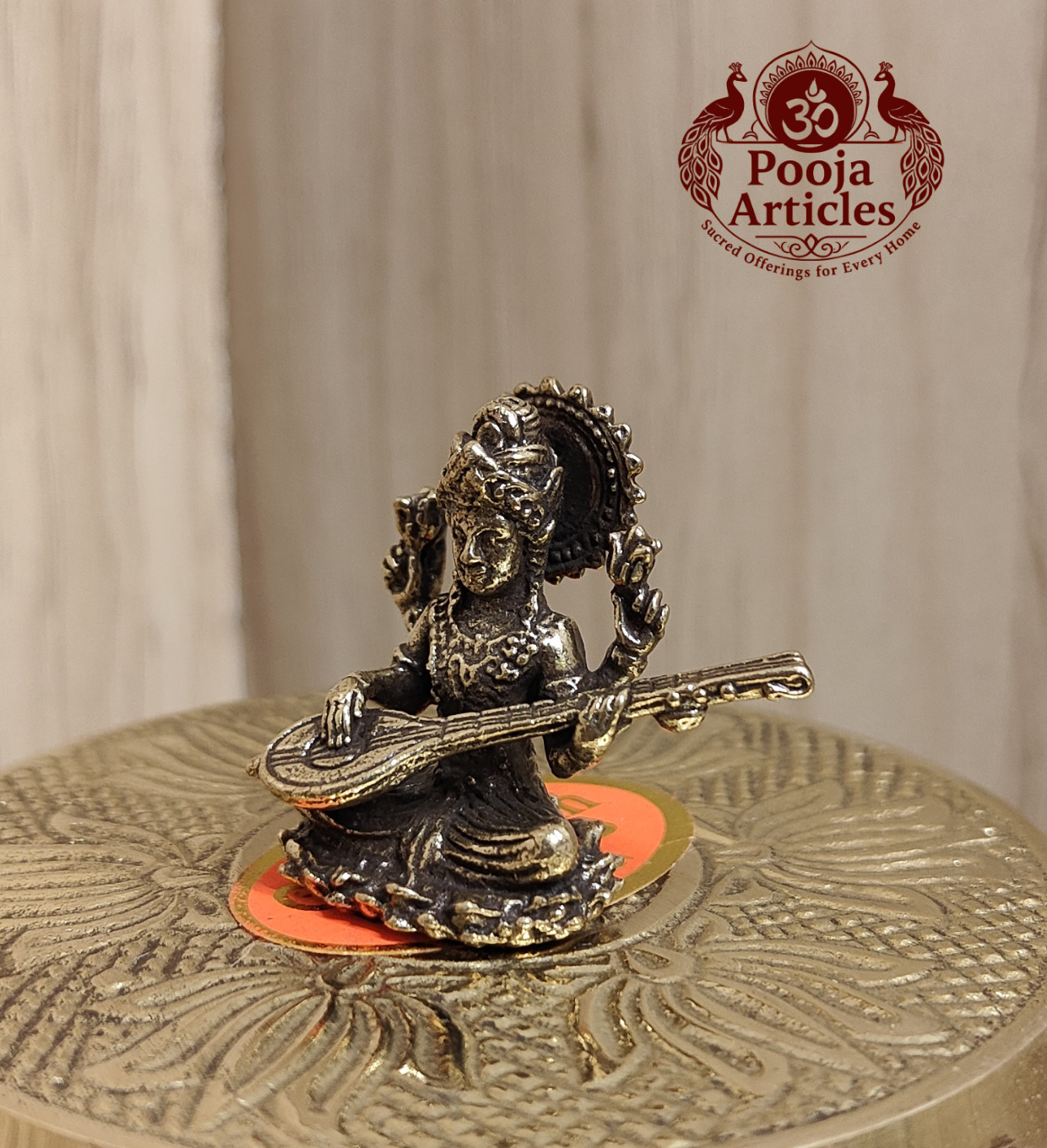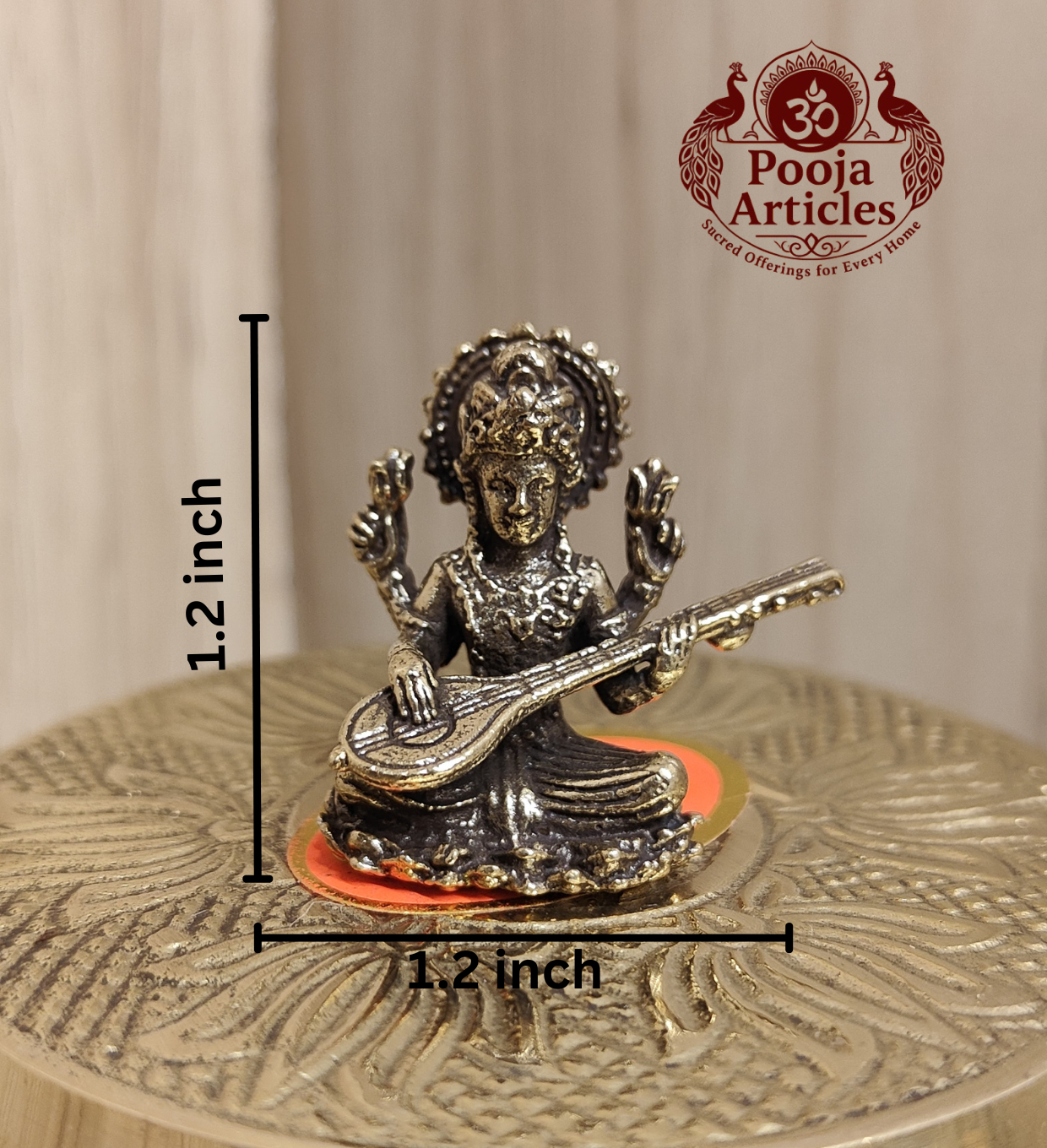 Buy Miniature Brass Saraswati Statue 20g, 1.2″ – Divine Brass Saraswati Idol for Education