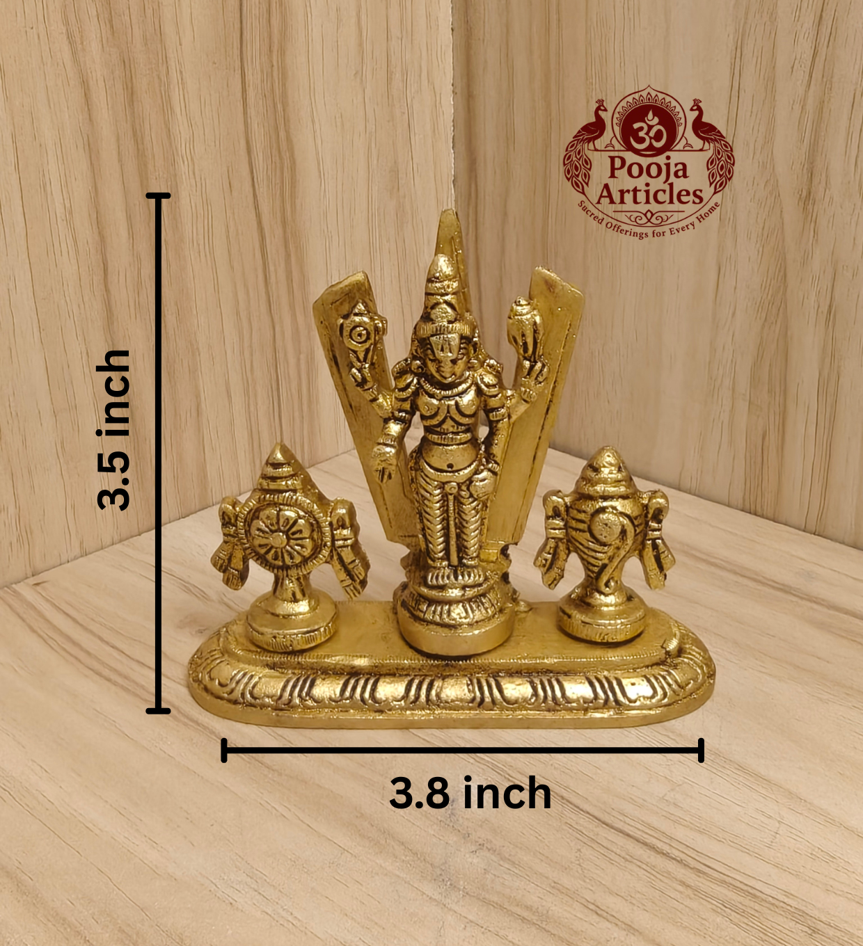 Buy Brass Shankh Chakranamah Balaji Statue Online – 3.5 inch, 300g Divine Venkateswara Idol for Pooja, Vastu & Spiritual Decor