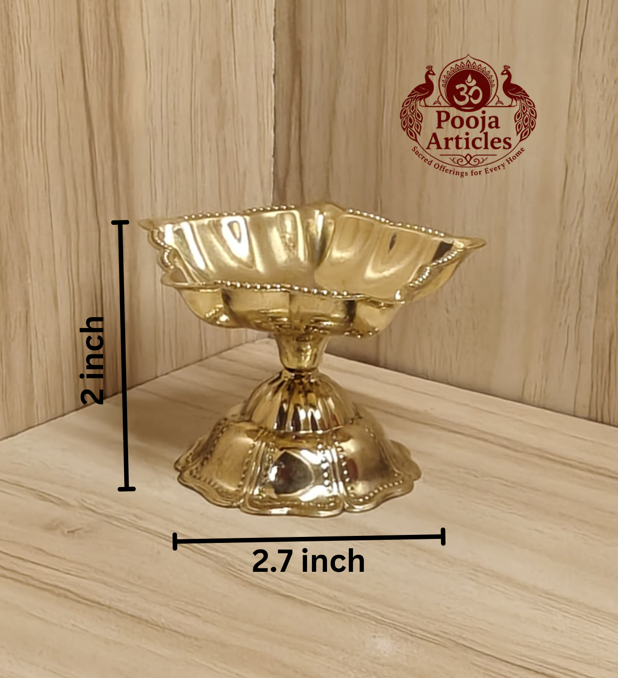 Illuminate your pooja space with the elegant Brass Star Diya, a handcrafted star-shaped oil lamp weighing 80 grams, measuring 2 inches in height, 2.7 inches in length, and 2 inches in breadth. Perfect for daily rituals, festival decorations, and gifting. Shop authentic Brass Star Diyas at poojaarticles.com for auspicious lighting and spiritual grace.
