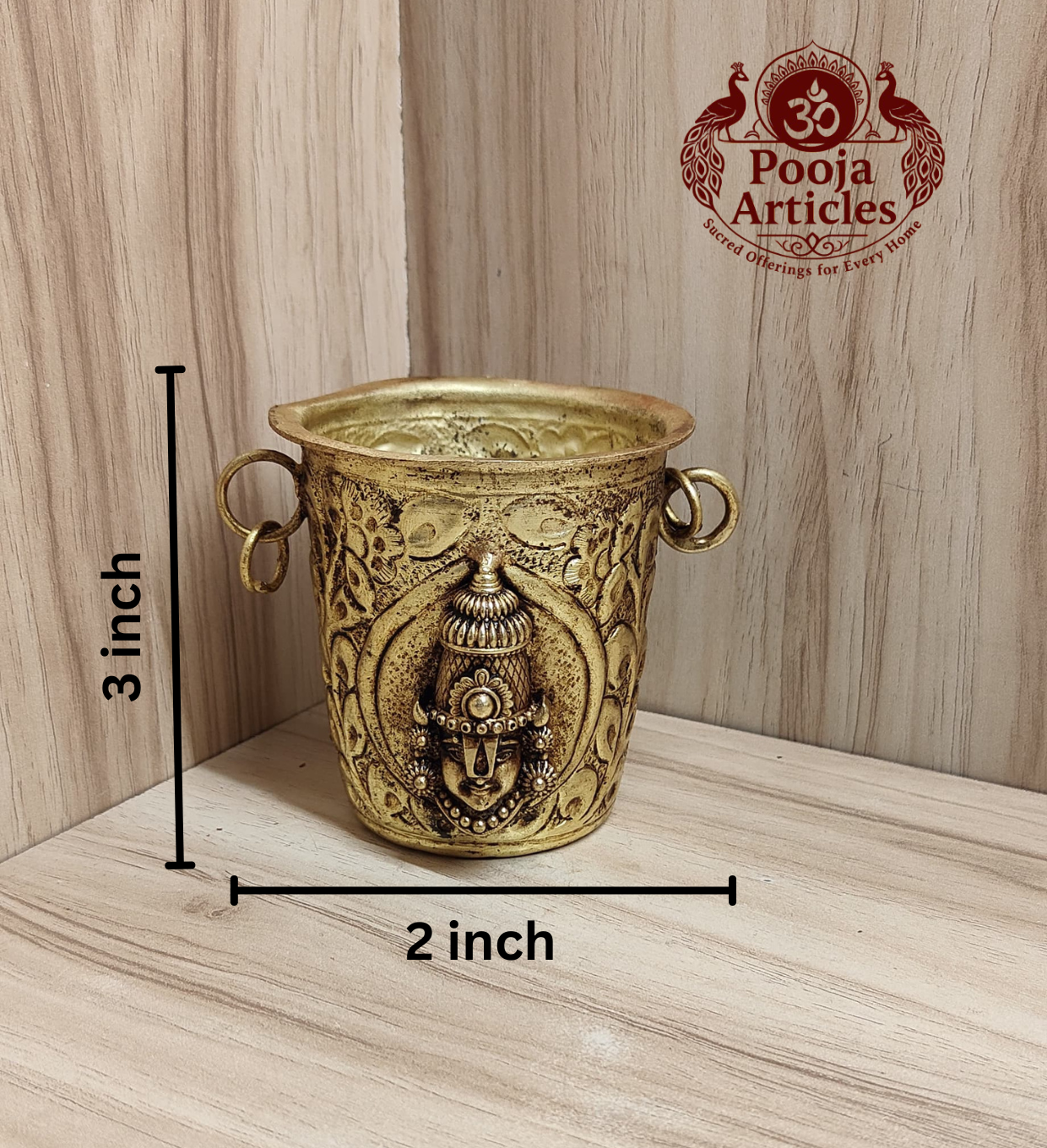 The Brass Tirupati Balaji Glass is designed with precise dimensions for easy use and spiritual functionality.