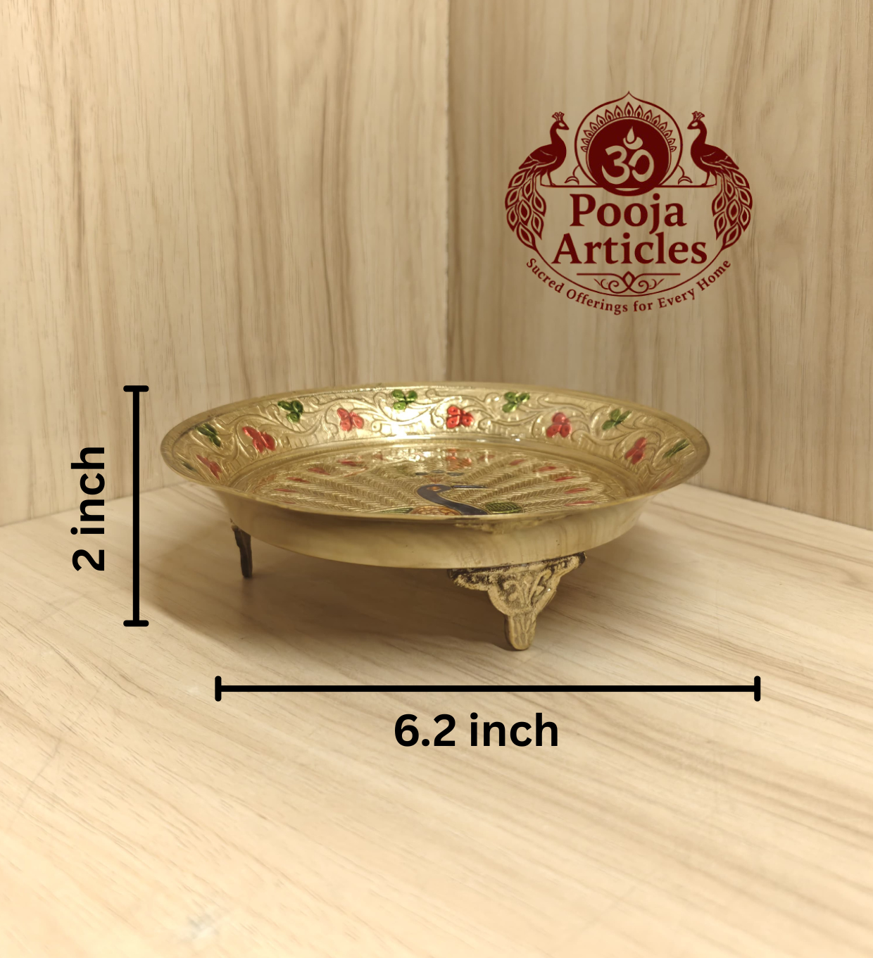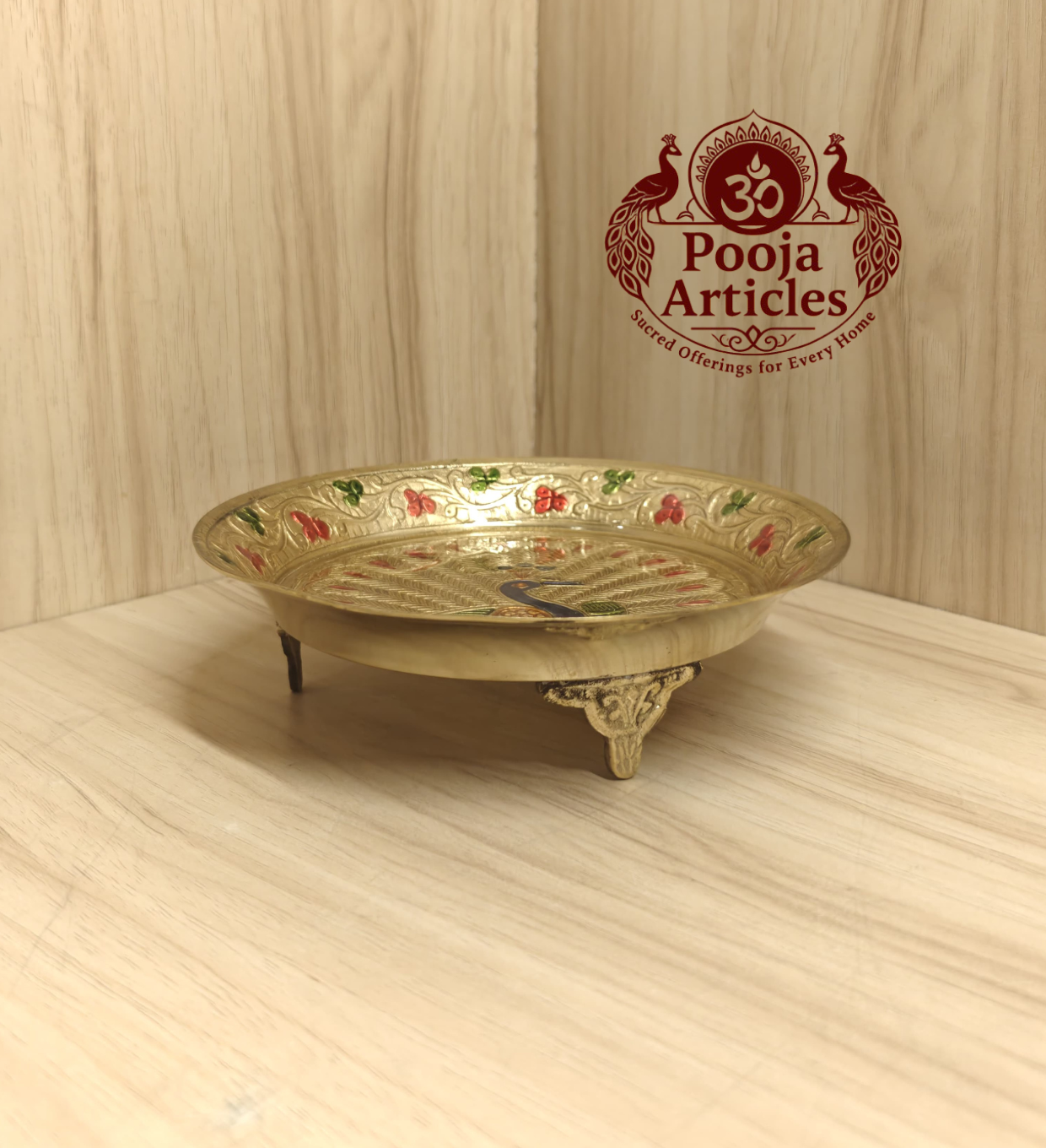 Buy Brass Peacock Pin Tray – 280g, 6.2″ Handcrafted Divine Plate for Pooja & Gifting