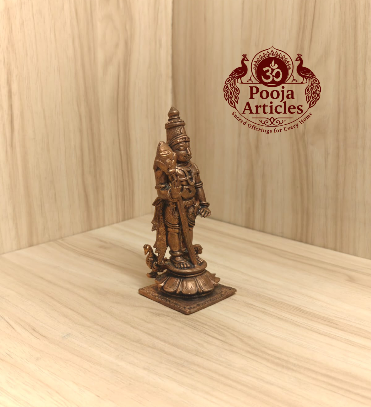 Shop handcrafted copper Murugan statue (370g, 4.5 inch) online in India. Ideal for pooja rooms, gifting, or spiritual decor. Order now from poojaarticles.com!
