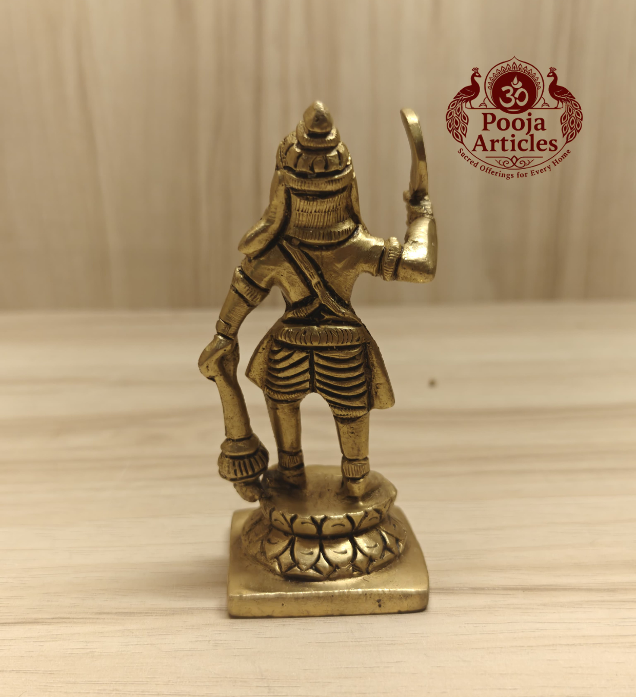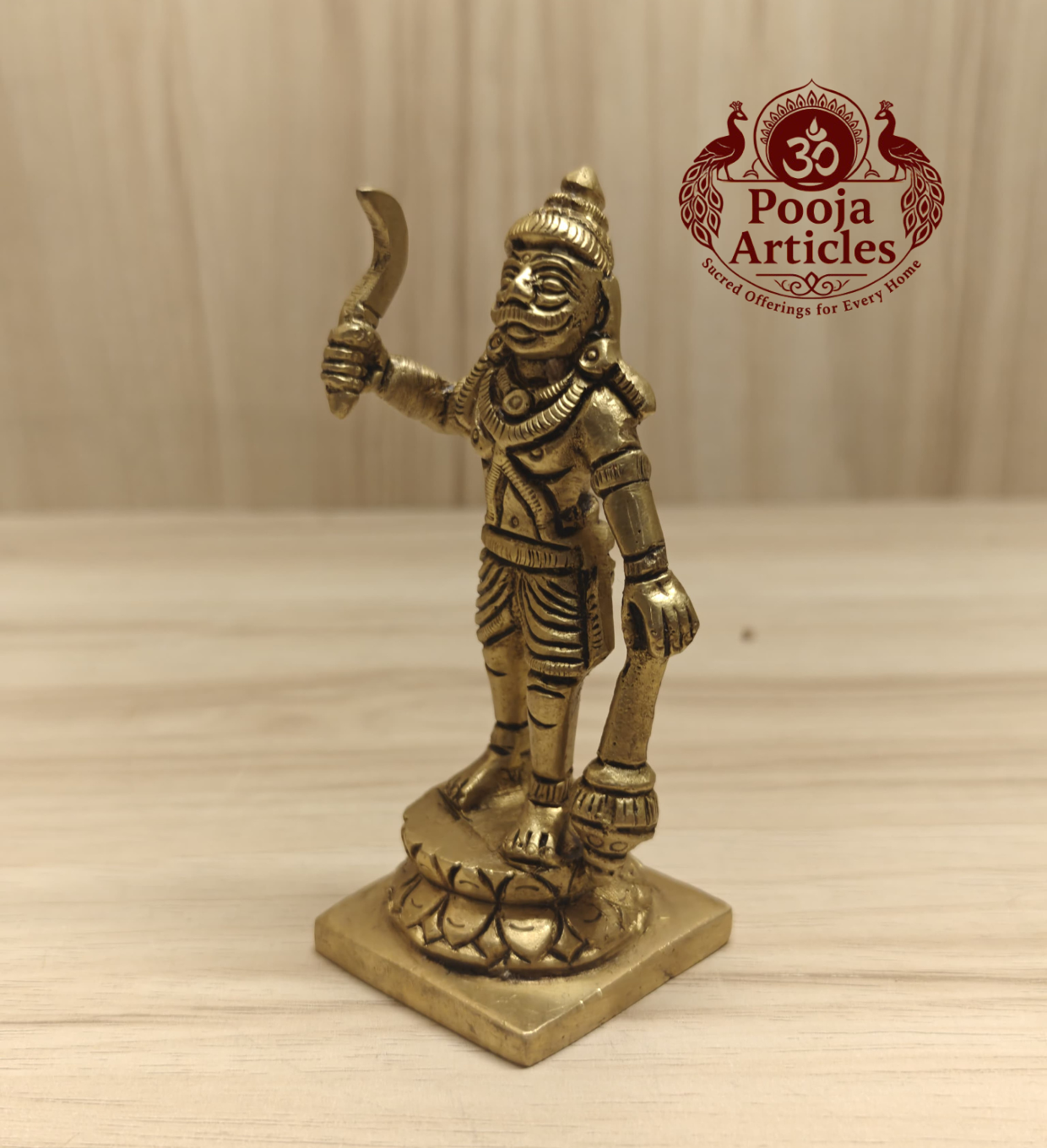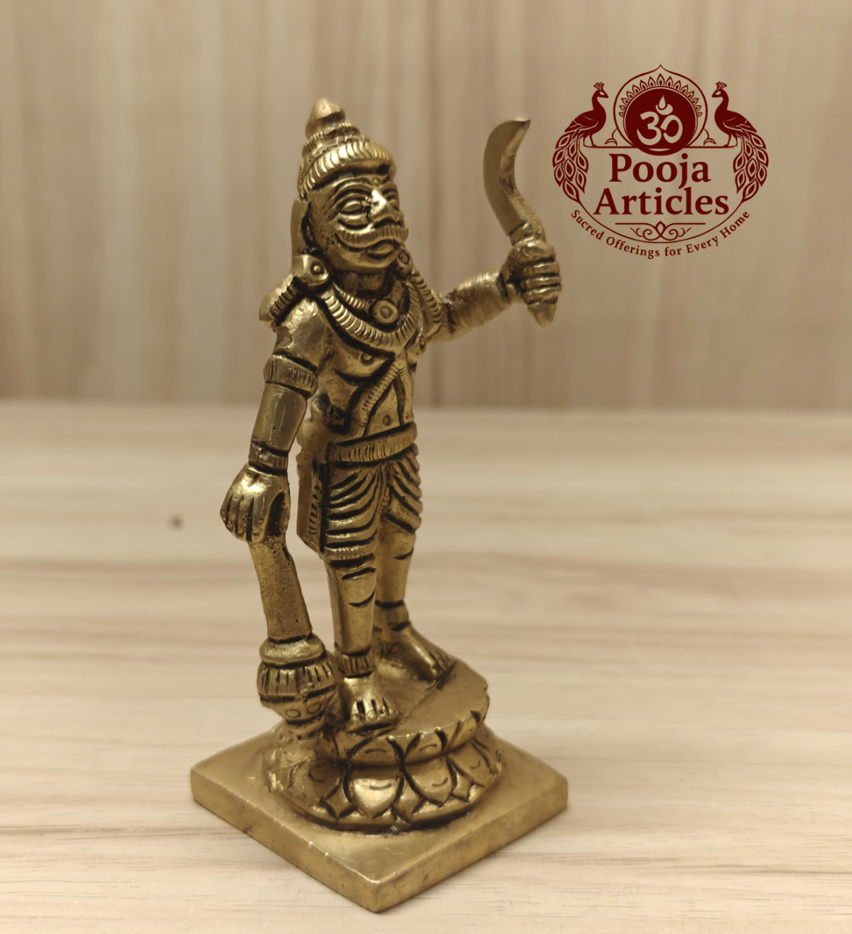 Bring home divine protection with this handcrafted Karuppasamy idol for home (270g, 4.2 inch). Pure brass statue for pooja, protection, and positive energy. Shop now at poojaarticles.com!