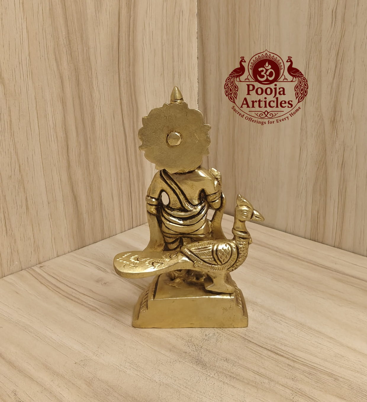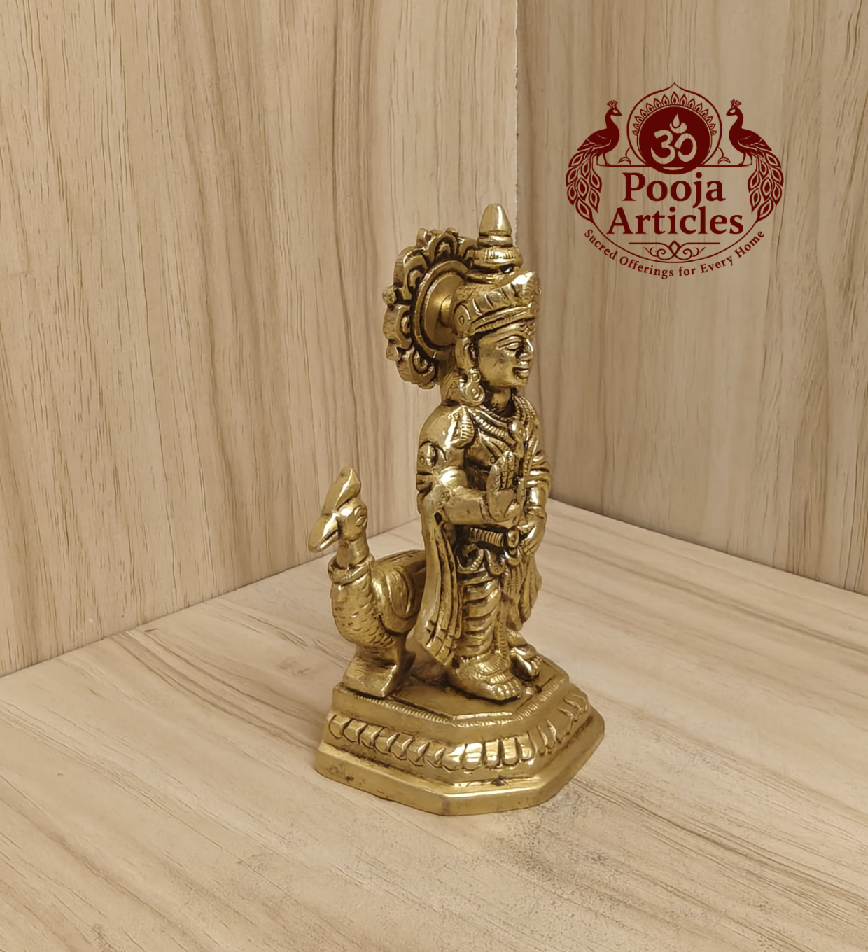 Buy Brass Peacock Murugan Statue Online – 1.200g, 7″ Handcrafted Lord Murugan Idol for Pooja and Home Decor