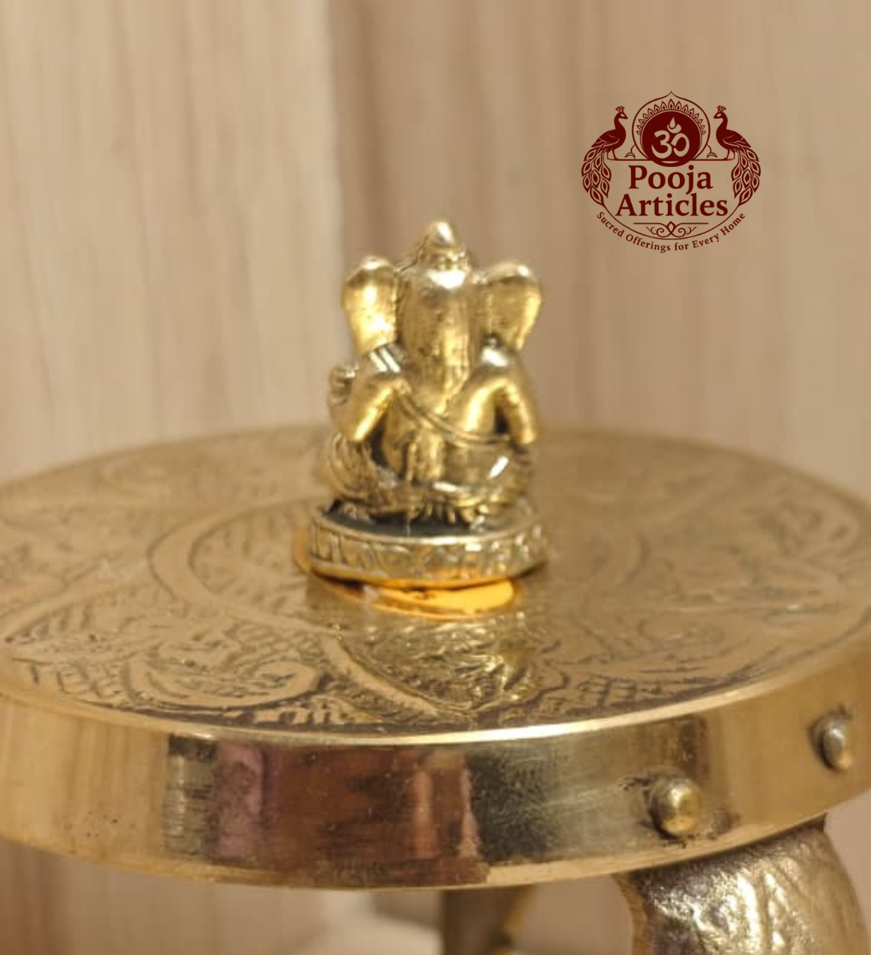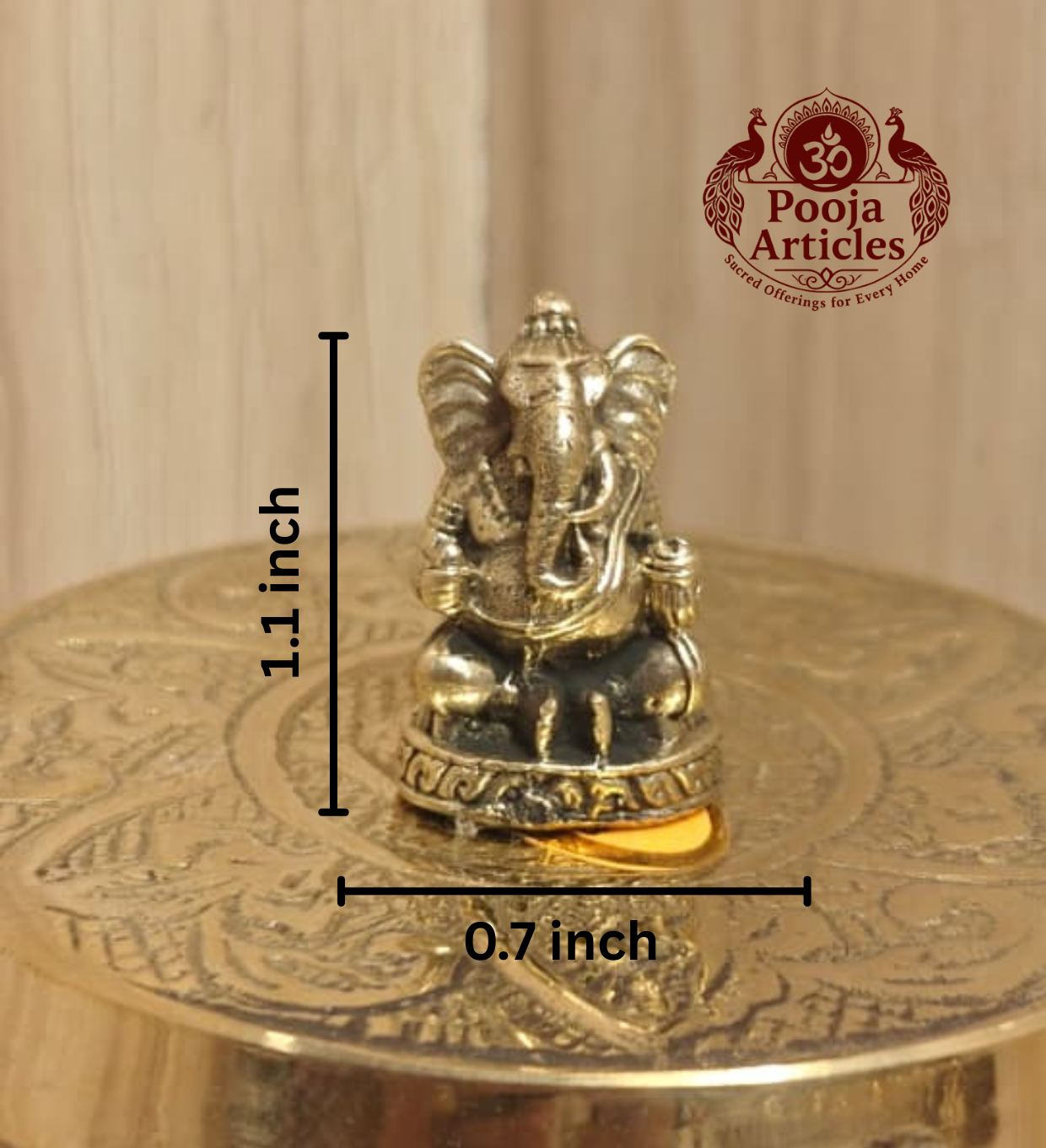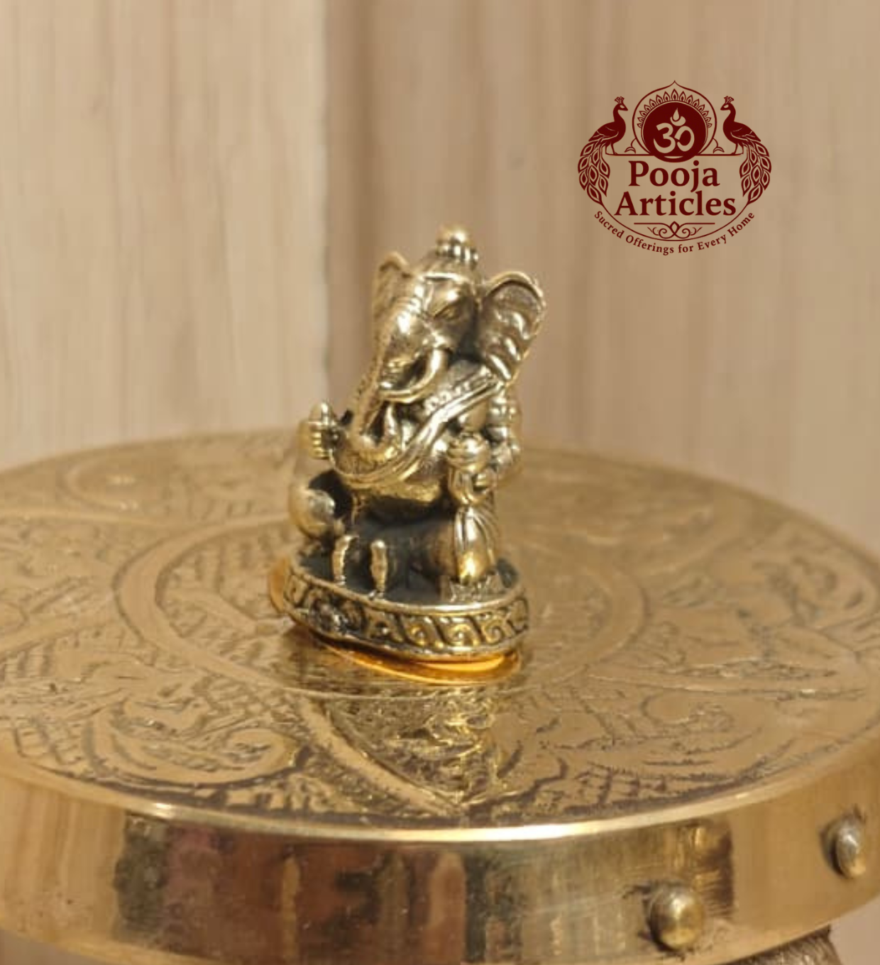 Buy Miniature Brass Ganesha Idol online from poojaarticles.com. Pure brass small Ganesh murti ideal for home pooja, office desk, vastu balance, and auspicious beginnings.
