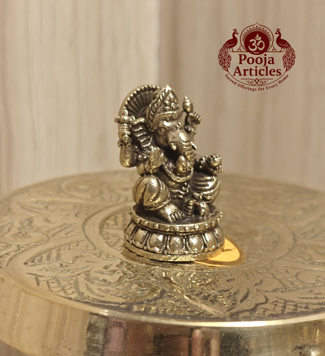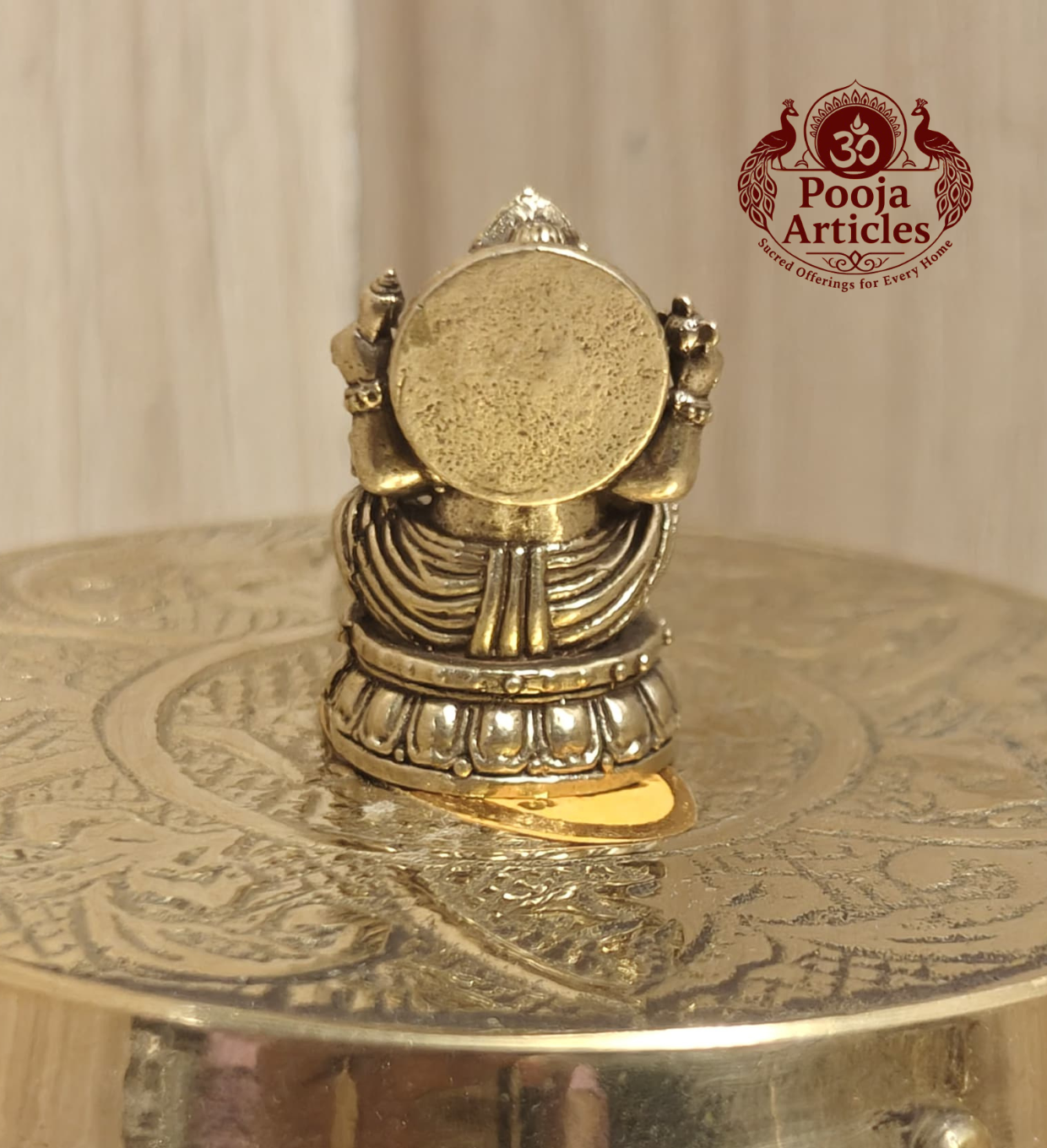 Buy Miniature Brass Ganesha Statue online at poojaarticles.com. Pure brass small Ganesh murti ideal for home pooja, office desk, vastu harmony, and auspicious beginnings.