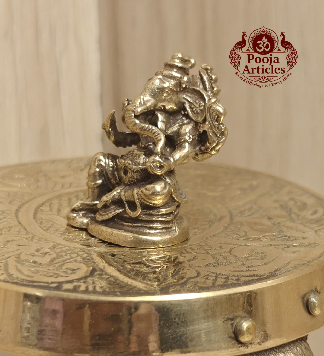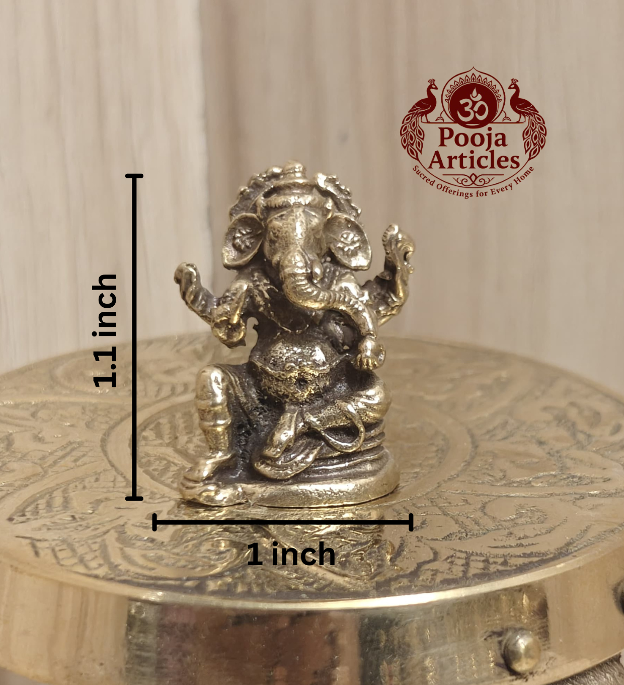 Buy Miniature Lord Ganesha Idol with 20 grams weight and compact size, ideal for pooja, travel, gifting, car dashboard and daily worship. Order from poojaarticles.com.
