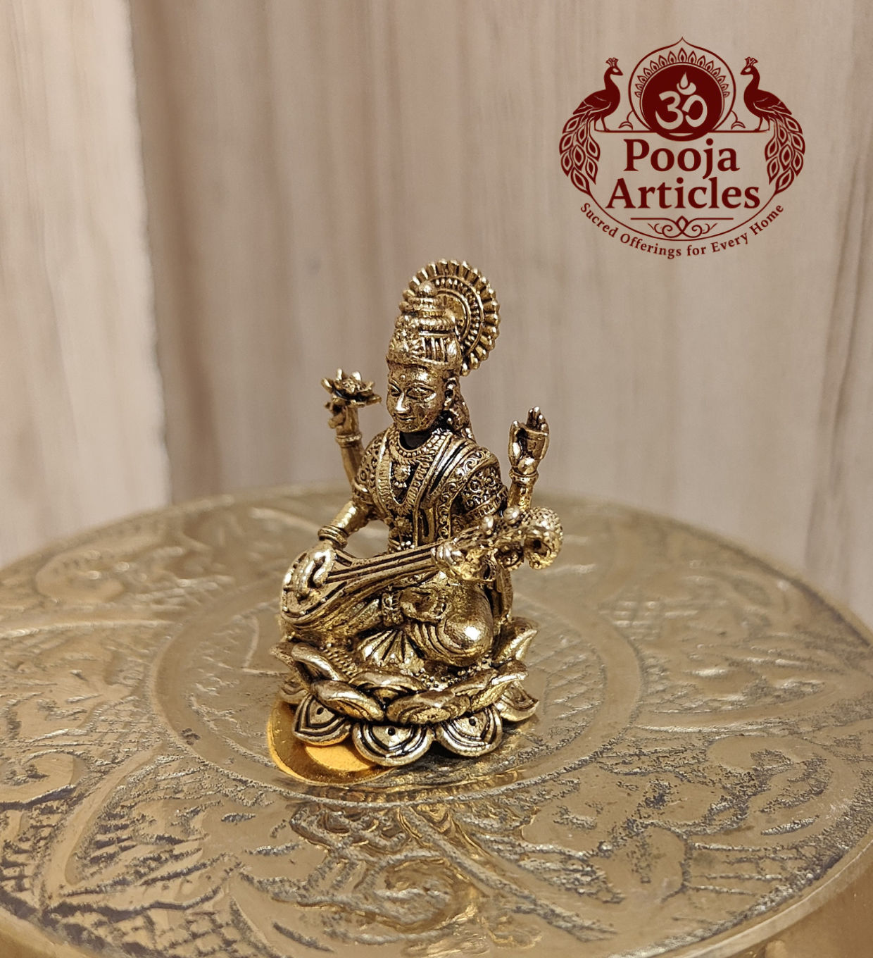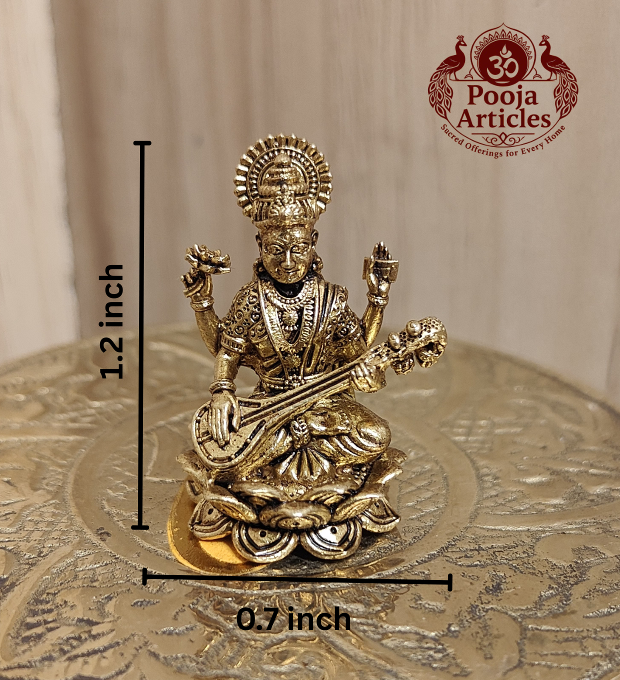 Buy Panchaloha Saraswati Idol (25 grams, 1.2 inch height). Small yet powerful idol for study table, home temple, office and gifting. Invite wisdom and success.