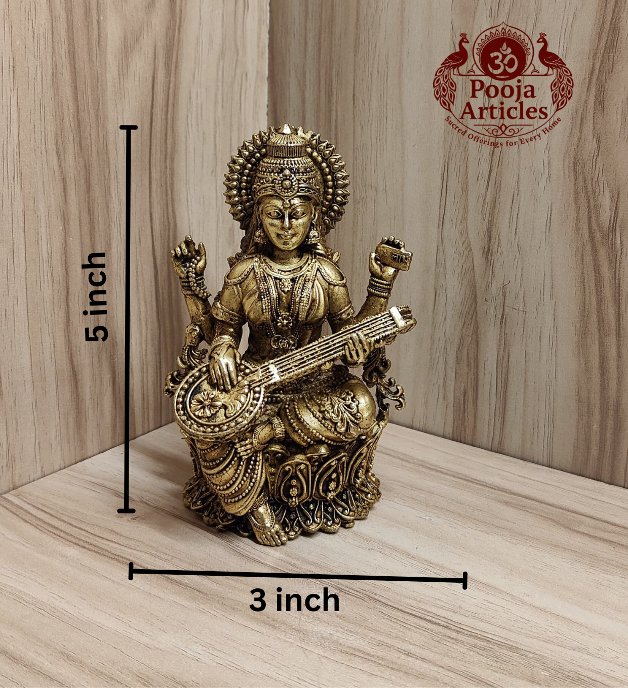 Buy Premium Brass Saraswati Idol 480g, 5″ – Pure Brass Saraswati Statue for Home Temple & Wisdom