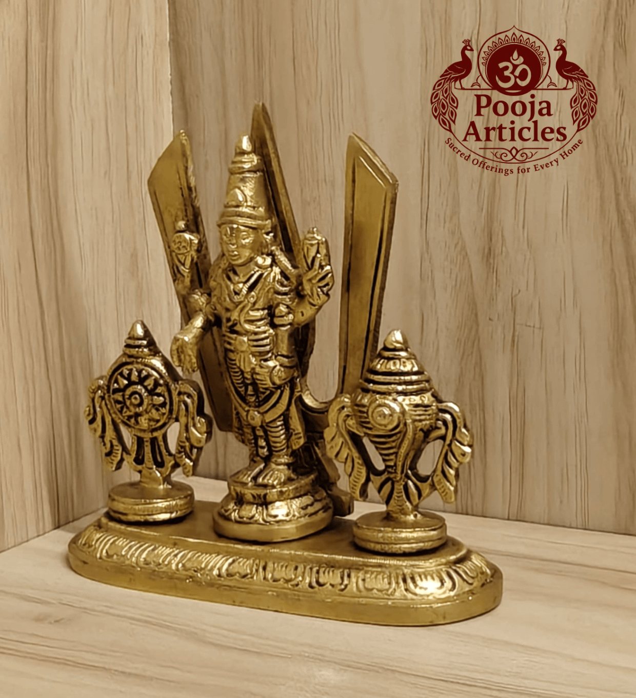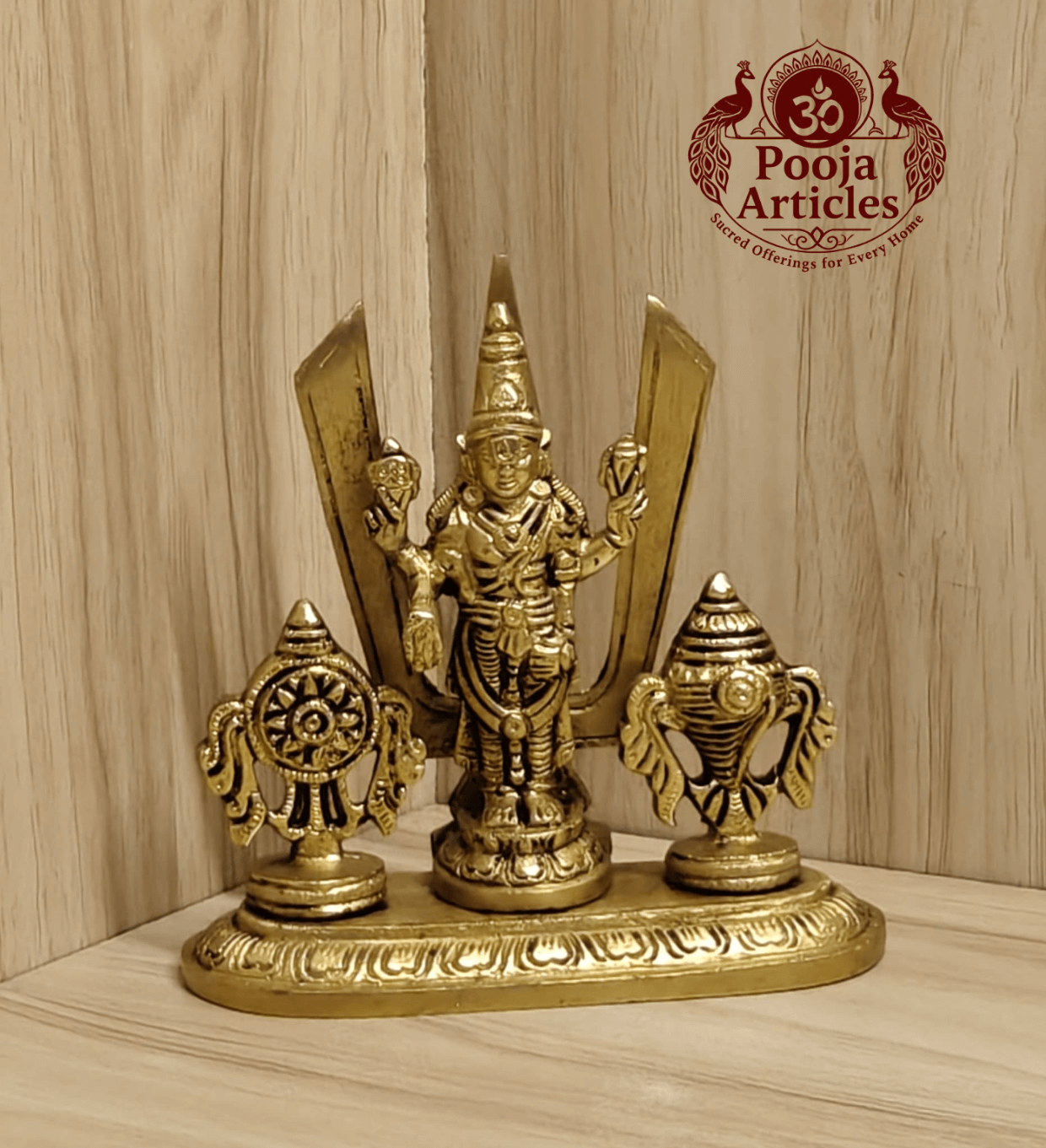 Every Brass Shankh Chakra Stand with Perumal Idol from poojaarticles.com undergoes quality checks for material purity, finishing, and dimensional accuracy.