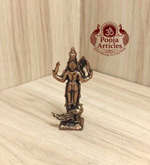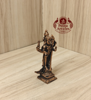 Enhance your space with this Handcrafted 3-Inch Pure Copper Statue. A masterclass in traditional metalwork, this solid copper piece weighs approximately 70 grams and features a refined antique finish. Created using time-honored casting methods by skilled South Indian artisans, it captures intricate classical details—from the iconic spear to the serene expression—making it a sophisticated addition to any modern or traditional interior.