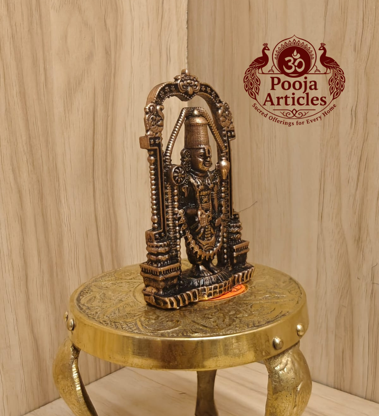 Lord Venkateswara (Balaji) is one of the most widely revered and depicted forms of Lord Vishnu in South Indian cultural heritage, enshrined at the famous Tirupati Balaji temple in Andhra Pradesh — one of the most visited pilgrimage sites in India. The Shankha (conch), Chakra (discus), and Varada Mudra (blessing gesture) are defining iconographic attributes of Venkateswara in classical South Indian temple sculpture. Copper has been a traditional material for idol crafting in South India for centuries, valued for its durability and warm finish. This figurine reflects fine hand-finished detailing characteristic of skilled South Indian artisan metalwork.