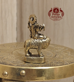 This beautifully handcrafted Miniature Brass Durga Devi Statue is a finely detailed piece of traditional South Indian metal artistry. Standing just 1.5 inches tall and weighing only 15 grams, it features intricate detailing of the goddess in her classical iconographic form — with multiple arms, weapons, and her lion mount — all rendered in a warm antique brass finish. Its compact, lightweight design makes it perfect for home temples, office desks, travel pooja kits, and gifting.