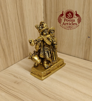 Brass Radha Krishna with Cow Idol 3.2 Inch