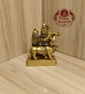 This premium brass figurine features a classic three-figure composition, including a traditional couple and a cow, rendered in a timeless artistic style. Weighing 300 grams with a lustrous gold-tone finish, this piece is an excellent choice for home display, interior styling, and premium gifting.